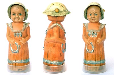 2-Gesichterpuppe Sie wollte das Hütchen drehen - was mir einiges Unbehagen machte. Noch niemals hatte jemand ohne Fachkenntnisse meine Puppenkinder angefasst, anfassen dürfen. Dann eine Kameradrehung und ich war im Bild, vor der