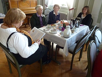 Ich hatte mir Gedanken gemacht, wie es eine gemütliche, interessante und abwechslungsreiche Kaffeestunde für uns würde. So habe ich dann zu Beginn das zauberhafte Gedicht von der verschwundenen Puppe vorgelesen. Damit war auch das Eis sofort gebrochen und ich brauchte mich überhaupt nicht mehr zu bemühen, die Unterhaltung lief von ganz allein. |
