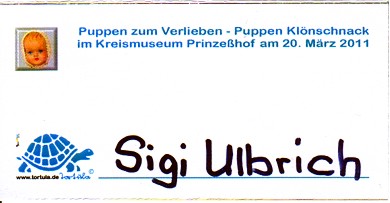 ... Doch diesmal blieben wir ja alle noch zusammen zu unserem Puppen-Klönschnack. Mein Mann hatte für diese Kaffeestunde Tischkarten vorbereitet, damit wir uns alle namentlich ansprechen konnten |